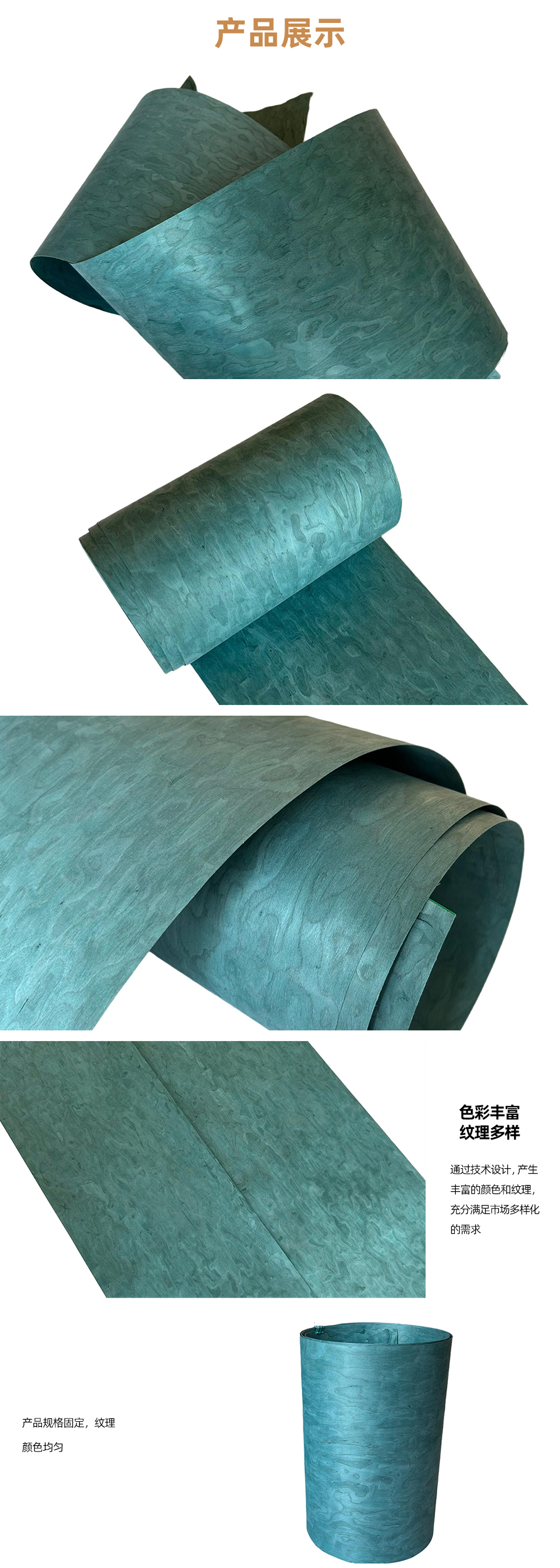 科技木皮其纹理及色泽的规律性、使用规格尺寸的一致性。在使用过程中不会产生天然木皮产品由于原木不同、造成不同批次的纹理差异、色泽差异,产生难以拼接的烦恼。