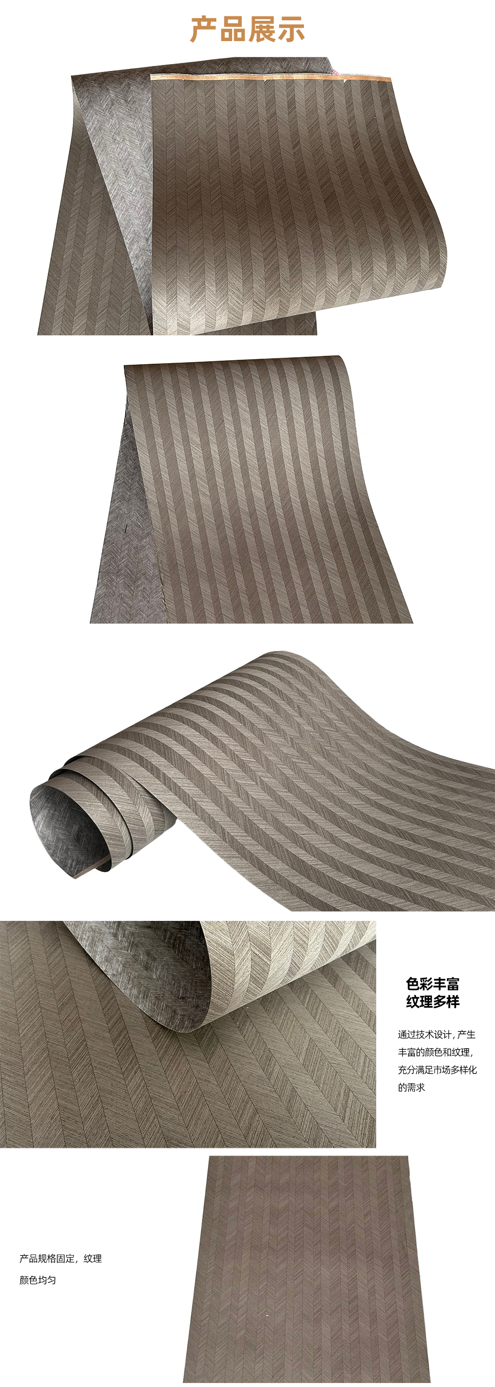 科技木皮其纹理及色泽的规律性、使用规格尺寸的一致性。在使用过程中不会产生天然木皮产品由于原木不同、造成不同批次的纹理差异、色泽差异,产生难以拼接的烦恼。
