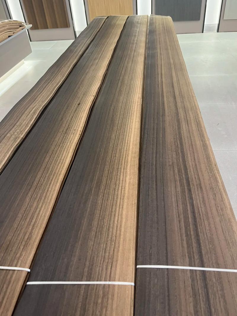 烟熏木皮,又被称为碳化木皮,是一种经过表面炭化或深度处理的木材,表面形成一层薄薄的炭化层。这种处理方式类似于木材表面的油漆,但能够凸显出木材的天然纹理,产生独特的立体效果,常用于家具和其他产品的贴面装饰。