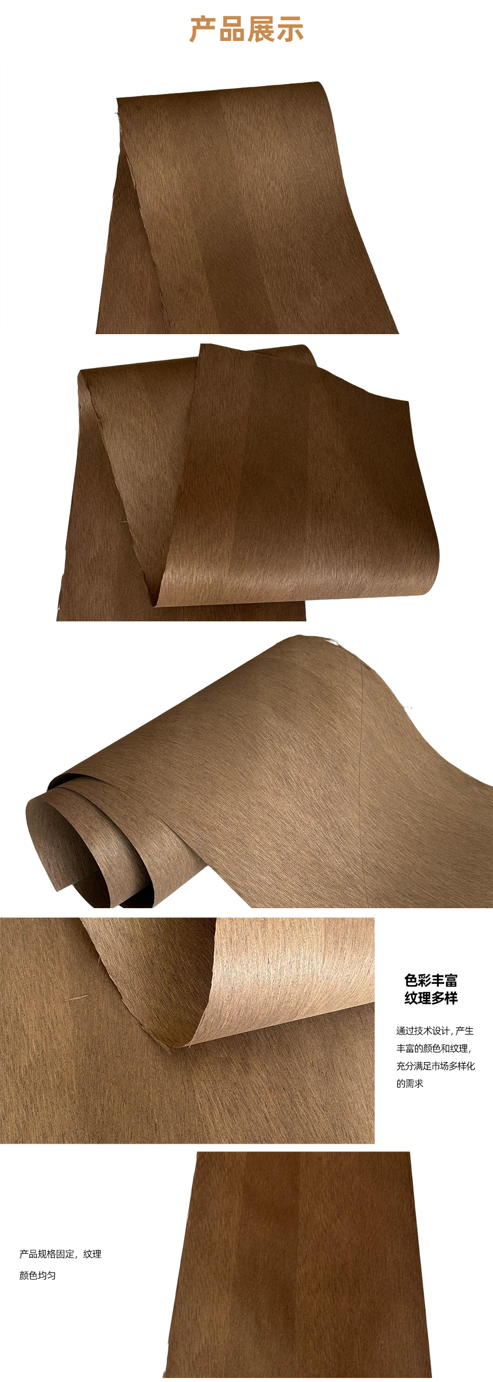 科技木皮其纹理及色泽的规律性、使用规格尺寸的一致性。在使用过程中不会产生天然木皮产品由于原木不同、造成不同批次的纹理差异、色泽差异,产生难以拼接的烦恼。