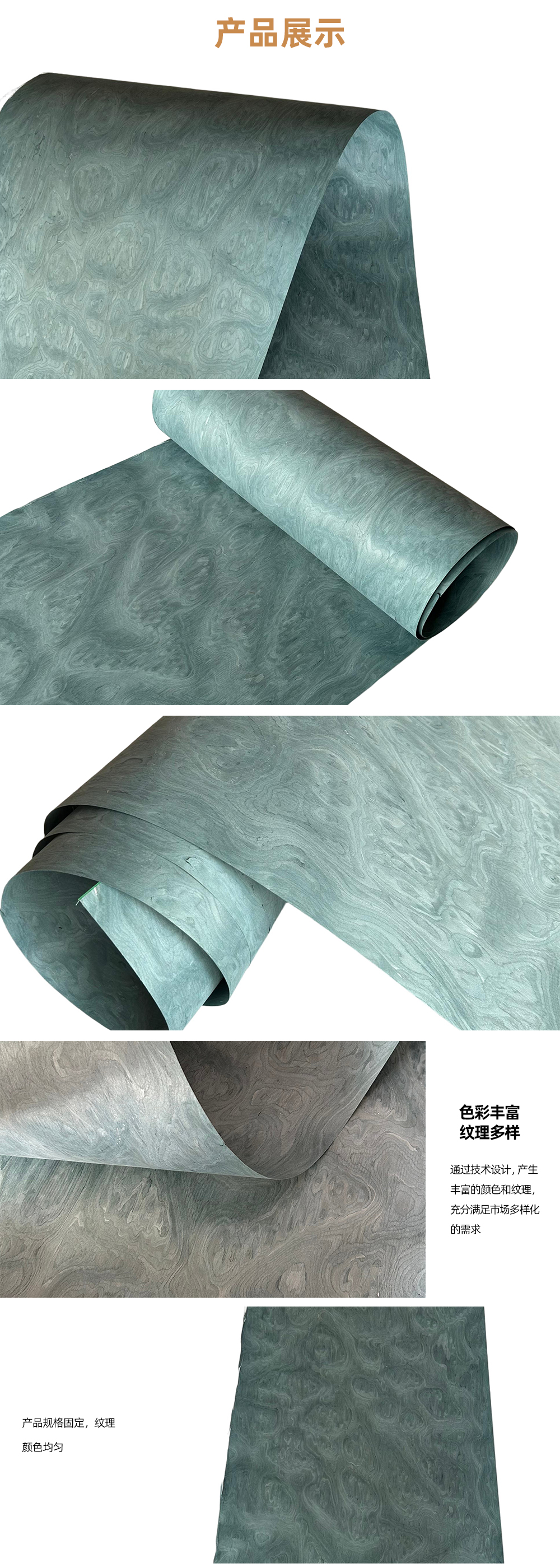 科技木皮其纹理及色泽的规律性、使用规格尺寸的一致性。在使用过程中不会产生天然木皮产品由于原木不同、造成不同批次的纹理差异、色泽差异,产生难以拼接的烦恼。
