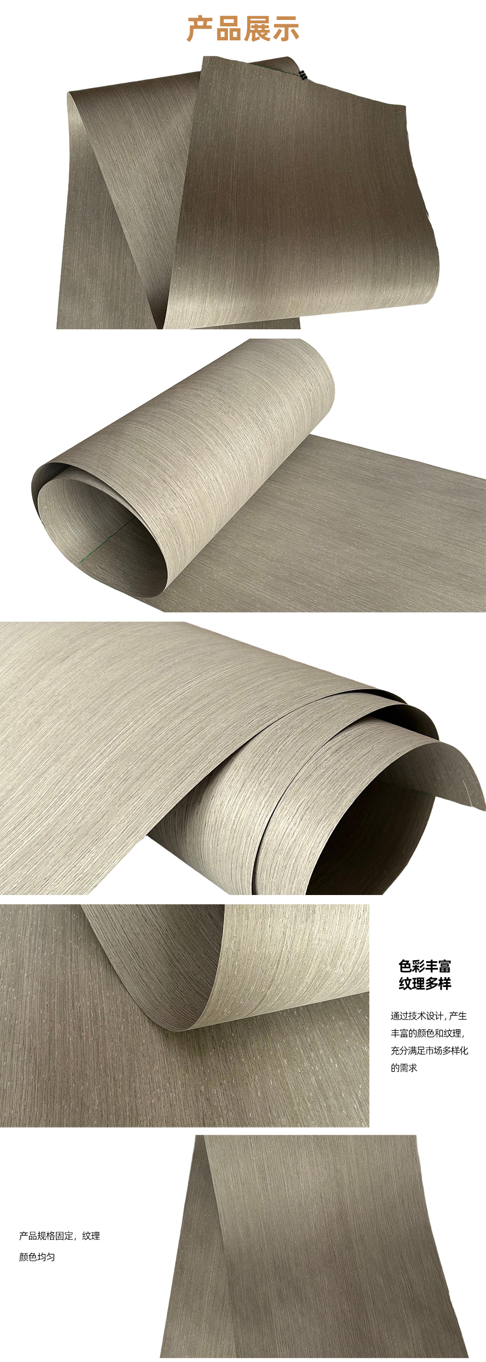 科技木皮其纹理及色泽的规律性、使用规格尺寸的一致性。在使用过程中不会产生天然木皮产品由于原木不同、造成不同批次的纹理差异、色泽差异,产生难以拼接的烦恼。